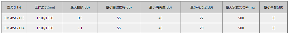 F-tone Networks公司提供滤波片型和熔锥型保偏耦合器,其中滤波片型保偏耦合器利用干涉型滤波片不仅能够从输入PM光纤分离光束到两输出PM光纤中去,还可以合成两束PM光纤的光到一个PM光纤中去。此器件能在不改变线偏振的情况下用来分离高功率的线偏振光到多通道中去,还可用作功率分流器在不改变光信号的偏振态的情况下监测PM光纤系统的信号功率。熔锥型保偏耦合器利用消逝波耦合原理来对偏振光信号进行合波与分波,也可用于偏振光纤系统的功率检测。器件具有较高的消光比和很低的插入损耗,在保偏光纤通信系统和保偏光纤传感系统是必不可少的器件。光纤端口1x2/2x2/1X4/1X8可选,分束比1-50%可选。