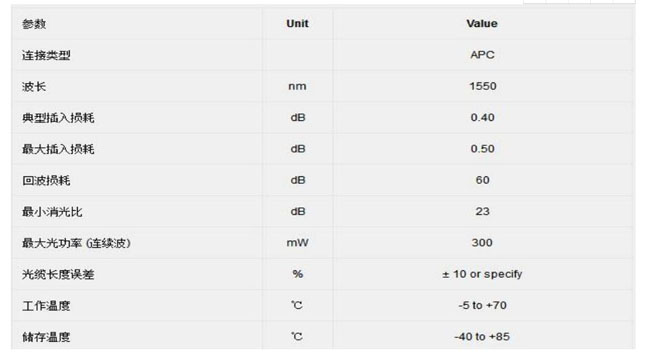 ● 消光比定以为保偏光纤跳线本身的消光比,不代表保偏光纤跳线和其他器件相连接时的消光比.