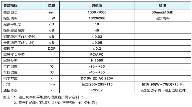 光纤 ASE 宽带光源模块采用光谱平坦技术,同时具有较高的输出功率,工作波长覆盖 C+L 波段,适合于光纤传感等 应用。 可提供 RS-232 接口和上位机软件,便于光源模块状态的监控。