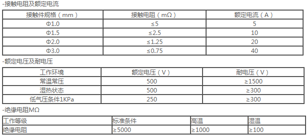 ● 接触件: 铜合金材料镀层金、银