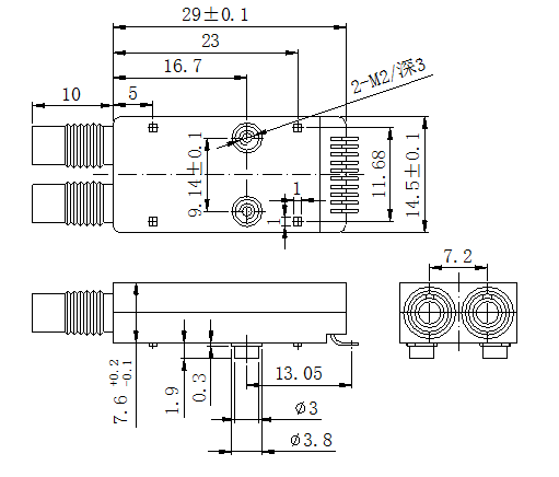 FTDI-xx24/42-xx型双纤双向表贴型光收发模块将发送和接收部分封装在一个小尺寸金属壳体内,增强了模块抗电磁干扰能力。光发射部分采用大功率LD,发送信号引脚(TD+和TD-)接口电平标准为CML。