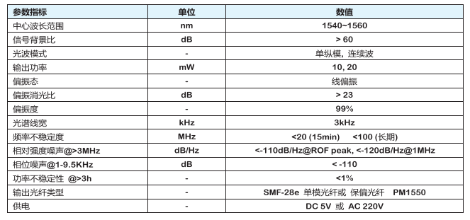 ● 光谱线宽 ≤ 1KHz