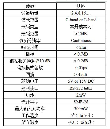 多通道可调光衰减器模块采用了进口芯片以及我公司先进的MEMS技术,其光学性能、电路设计、体积大小均符合行业要求,可根据用户需求提供不同数量通道的产品。高可靠的VOA符合Telcordia GR-1209,GR-1221可靠性,合规性。