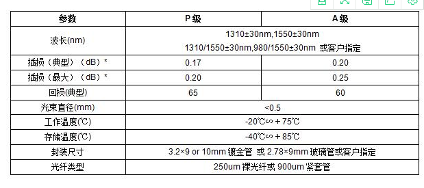 | 产品特点: ● 低损耗 ● 低回反 ● 高环境稳定性 |