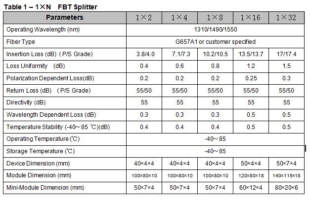 熔融拉锥是将两根或多根光纤捆在一起,然后在拉锥机上熔融拉伸,并实时监控分光比的变化,分光比达到要求后结束熔融拉伸,其中一端保留一根光纤(其余剪掉)作为输入端,另一端则作多路输出端。目前成熟拉锥工艺一次只能拉1×4以下。1×4以上器件,则用多个1×2连接在一起。再整体封装在分路器盒中。