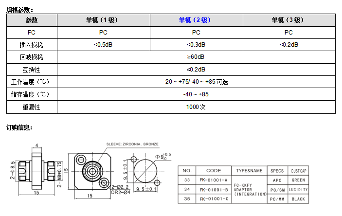 光纤适配器(又称法兰盘、藕合器)是光纤活动连接器对中连接部件。本系列产品品种齐全,包括FC、SC、ST、LC、MTRJ、MU等,还有相互之间进行转接的产品,如:ST-SC、FC-ST等,广泛用于光配线架(ODF)、光纤通信设备、仪表等,性能稳定可靠。