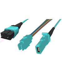 用于40G(4x 10G),100G(2x 50G或4x 25G),120G(3x 40G),200G(2x 100G或4x 50G或8x 25G)以及400G(2x 200G或4x 100G或8x 50G)分支数据中心互连的电缆组件。它是完全可配置的,可提供各种电缆和连接器组合,包括连接器类型,分支配置和护套材料。