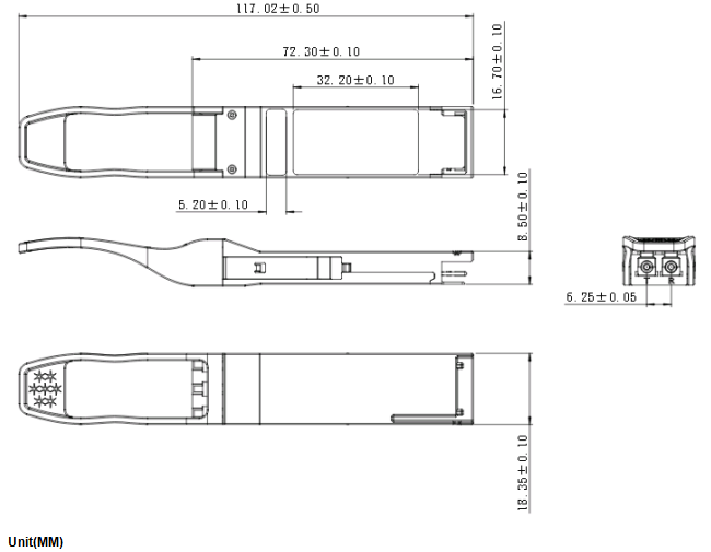100GE,OTU4, QSFP28, 100GBASE-ZR4, LAN_WDM 80km,-40 ~ +85℃ |