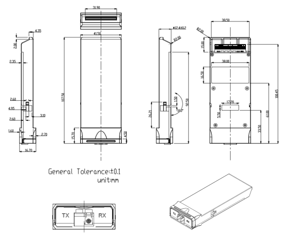 CFP2, Receiver only(without TOSA), 100GE/OTU4,10km,100GBASE-LR4,-40ºC ~ +85ºC |