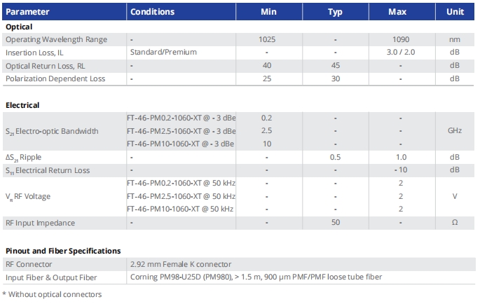 FT-46-PM0.2-1060-XT/PM2.5-1060-XT/PM10-1060-XT Phase Modulator