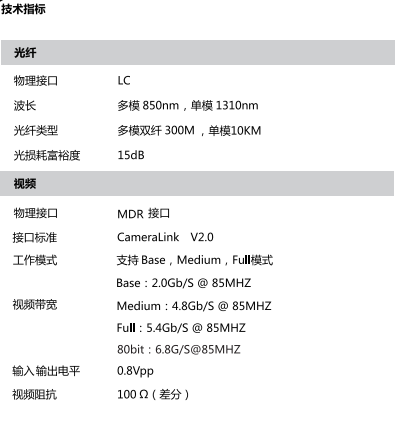 ● 支持1路Base模式+1路Full模式 Camera Link视频;