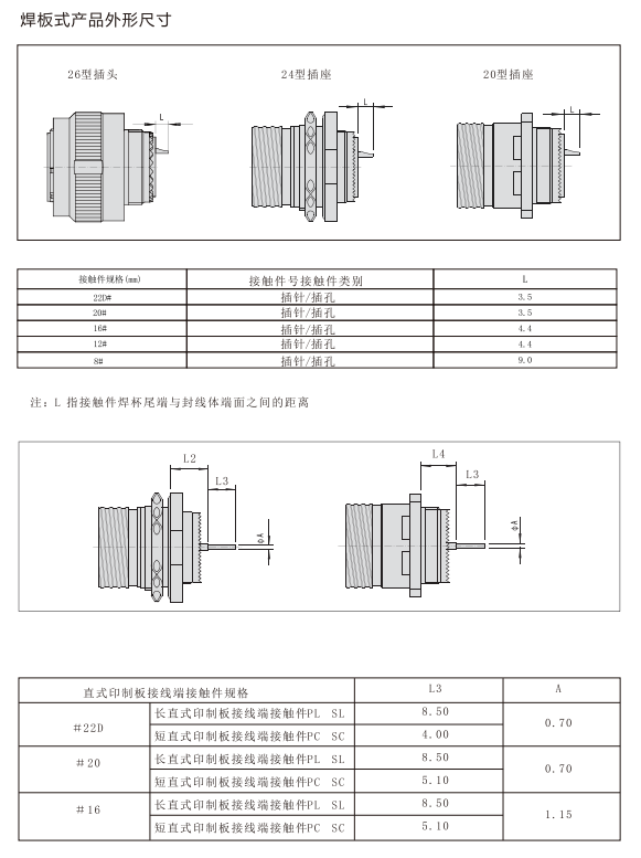 接触件:铜合金镀金,焊接型、压接型、印制板型