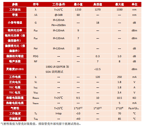 北亿纤通的半导体光放大器(SOA)系列产品,主要应用于主要应用于数据中心互联等光通信领域。该系列产品采用密封的无机封装技术,保证了产品的可靠性。