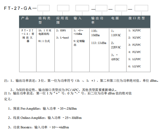本产品为FT-27系列光纤放大器,仅展示部分参数,如有需要,请联系我们。