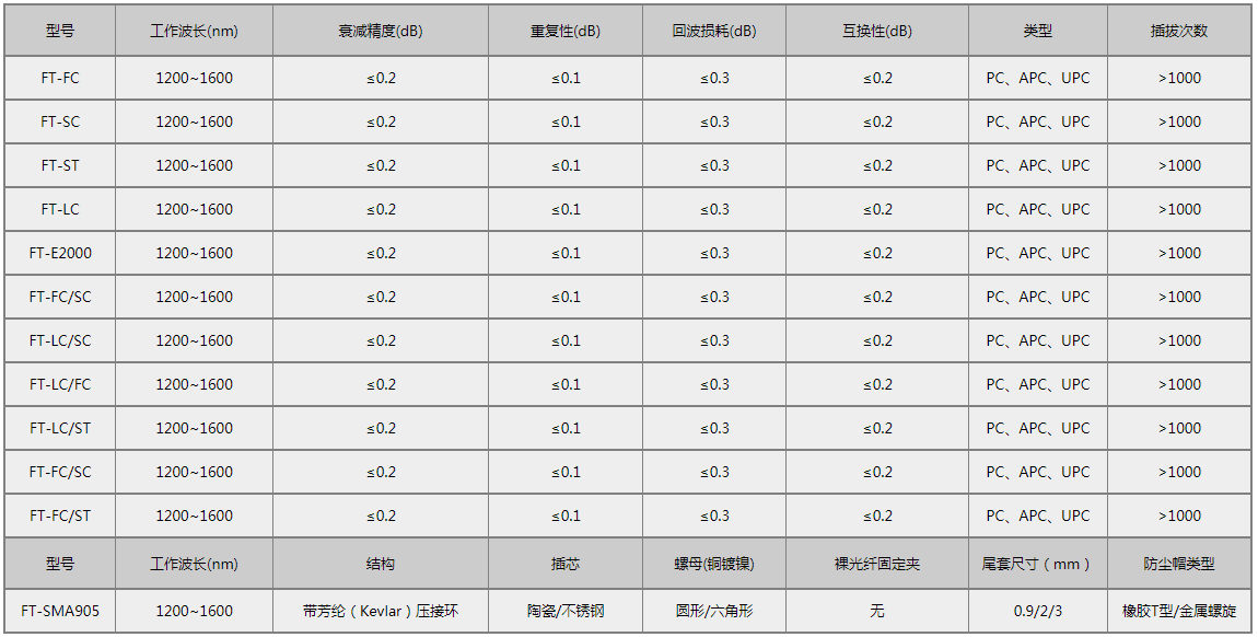 产品特点与应用:插入损耗低,每通过一个适配的连接损耗小于0.2db、互换性好、重复性好;应用于光纤通信系统、有限电视网络、局域网、光域网。