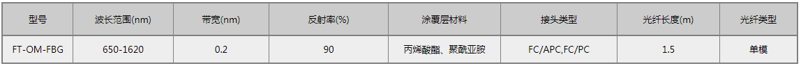 F-tone Networks公司研发生产的光纤传感光栅采用先进的光学工艺,工作波长范围650-1620nm,3dB带宽可达0.2nm,反射率大于90%,尺寸精巧,在测温、测压、振动测试等光纤传感领域中有着广泛的应用。