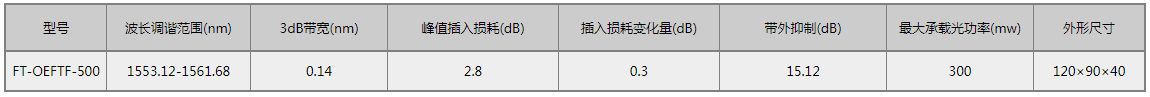 F-tone Networks提供的OEFTF-500系列可调谐光纤光栅滤波器是基于专有的拉伸/压缩调谐光纤布拉格光栅(FBG)技术。具有较宽的波长调谐范围、分辨率高、重复性好、操作简单及使用寿命长的特点。可调谐光纤光栅滤波器可用于光分插复用(AODM)、波长路由器开关、可调谐光纤激光器、动态色散补偿,广泛应用于光纤传感器、生物医学、仪器仪表等领域。