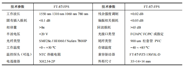 FT-87 -FPS 光纤移相器(调制器),一款电压驱动的光纤相位调制器。基于单根连续光纤拉伸器构造,使得其具有极低的插入损耗与偏振相关损耗(PDL)。特殊设计的机电驱装置,使残余偏振调制与强度调制极低。依据所选用光纤类型不同,工作波长范围可根据使用要求调整。光纤连续无断点使其可以承受较高的光功率。本产品设计应用于精密光纤相位调谐、光纤激光器、光纤谐振器及光纤干涉仪的相位调制等多种领域。