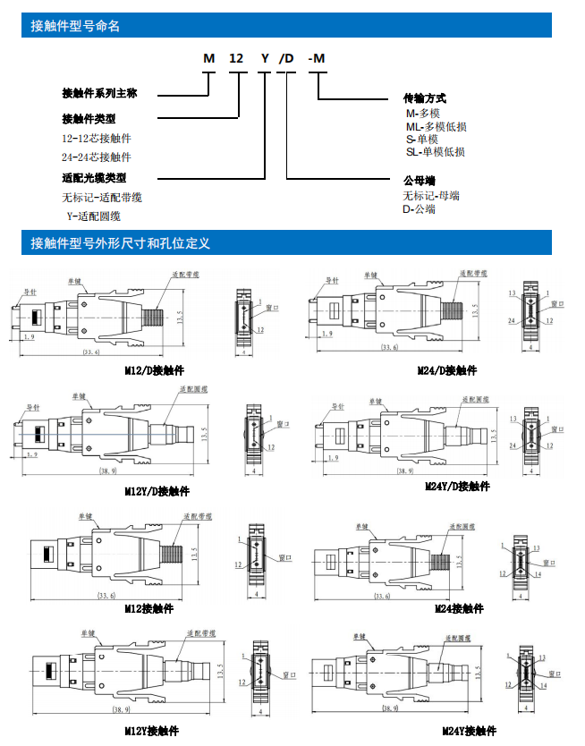 该系列产品是在GJB599Ⅲ系列基础上,采用12芯、24芯MT接触件发展成的一种耐环境高密度圆形光纤连接器。采用三级引导定位,具有五键识别、防错插、防斜插、盲插及接触件取卸方便等特点。外壳体可选用不同的材料及镀层适应不同的环境要求。MT接触件可免工具取卸。