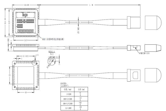● 结构尺寸:16.4mm×16.4mm×4mm