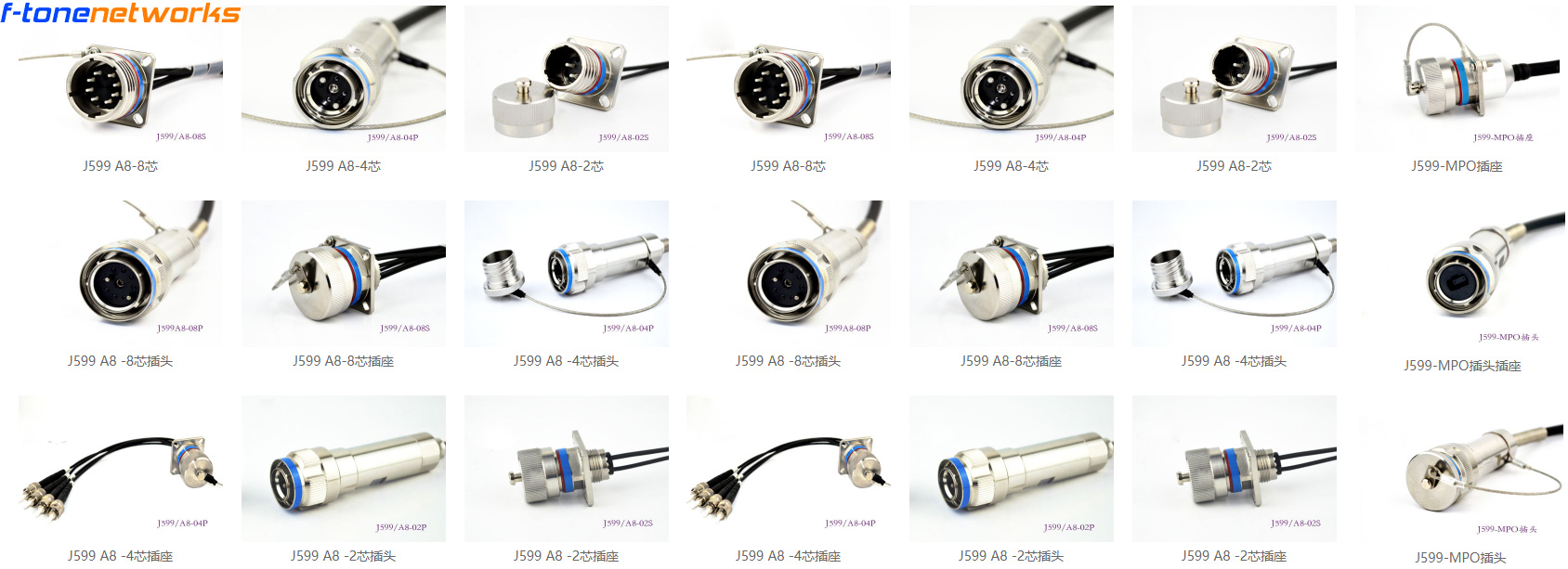 北亿纤通专业研发生产J599插头插座-12芯,J599插头插座-4芯,J599 插头插座-1芯,J599-12芯插头,J599-12芯插座,J599-4芯插头,J599-4芯插座,J599-1芯插头,J599-1芯插座,J599-MPO插头插座,J599-MPO插头,J599-MPO插座,J599 A8-8芯,J599 A8-4芯,J599 A8-2芯,J599 A8-8芯插头,J599 A8-8芯插座,J599 A8-4芯插头,J599 A8-4芯插座,J599 A8-2芯插头,J599 A8-2芯插座,J599 A8-6芯;J599室外防水光纤连接器采用三头螺纹快速连接,同时采用五键定位,有盲插和防错插及抗振功能,连接器采用不锈钢 316L材质、接触件密度高、抗电磁屏蔽功能,光纤组件可拆卸,方便现场安装,连接器损耗小、可靠性高;具有防水、防尘、耐腐蚀等特点。