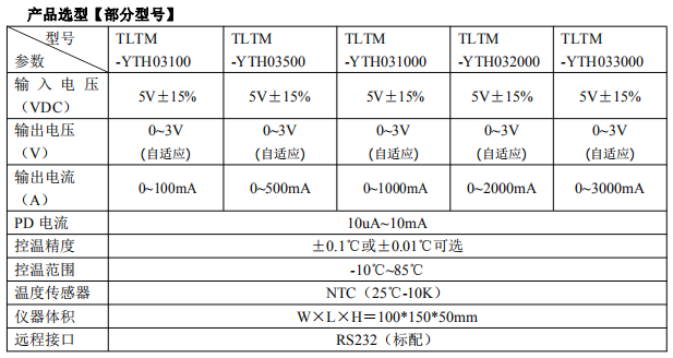 ● TEC 输出电压 1~5V 可调,流 3A