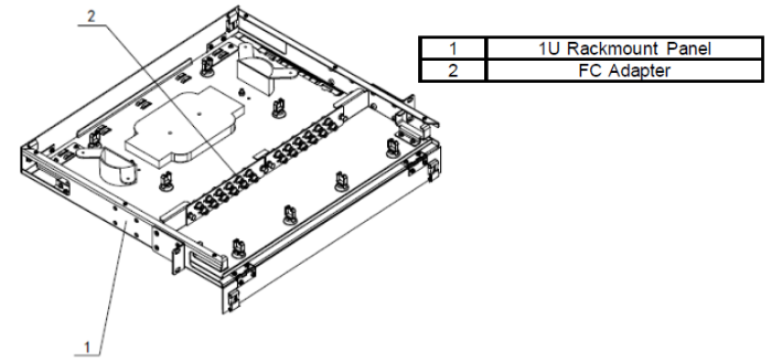 部件描述: 机架式拼接配线板,1U,24 芯光纤抽屉,装有 FC 多模式适配器(带金属外壳)