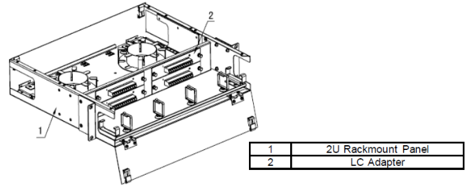 部件描述: 机架式插接配线板,2U,48 芯光纤抽屉式,装有 LC 多模式适配器(带米色外壳)