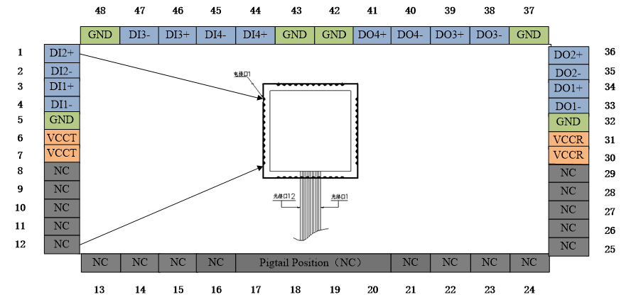 F-tone LCC48 4发4收一体光模块,10G每通道