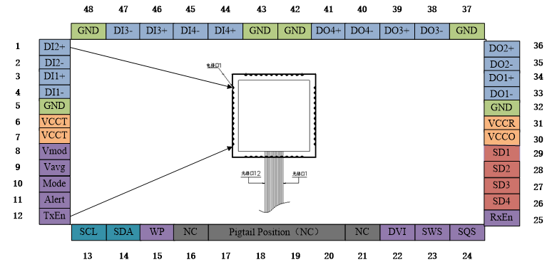 F-tone LCC48 4发4收一体光模块,6.25G每通道