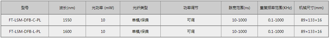 脉冲DFB激光器模块设计用于激光雷达、激光测距、MOPA光纤激光器、长距离光时域反射仪、Raman光纤分布式传感系统。模块自带脉冲信号发生器与阻抗匹配驱动单元,通过直接调制半导体激光器使其工作在极窄的脉冲宽度(最小值10ns),且可根据客户要求调节脉冲宽度与脉冲重复频率。本系列产品可与OPEAK脉冲光纤放大器系列产品配合使用,可大幅度提高脉冲峰值功率达KW级,特别适合于激发光纤内部的非线性效应。内置脉冲同步电路,在给出光脉冲信号时,同步电信号通过SMA接口输出,便于用户将模块植入系统。模块内置驱动电路与逻辑控制电路,对激光器温度、模块温度等关键信息实时监测。模块可通过上位机配置工作参数。模块出厂预设状态参数依据具体订货型号或客户要求提供默认配置。
