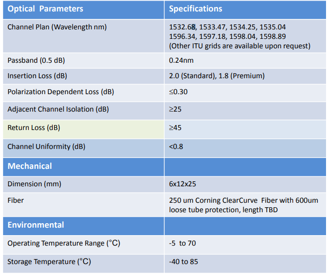 ● Compact, 8 channel DWDM (100G) , tightsealed, Epoxy free optical path