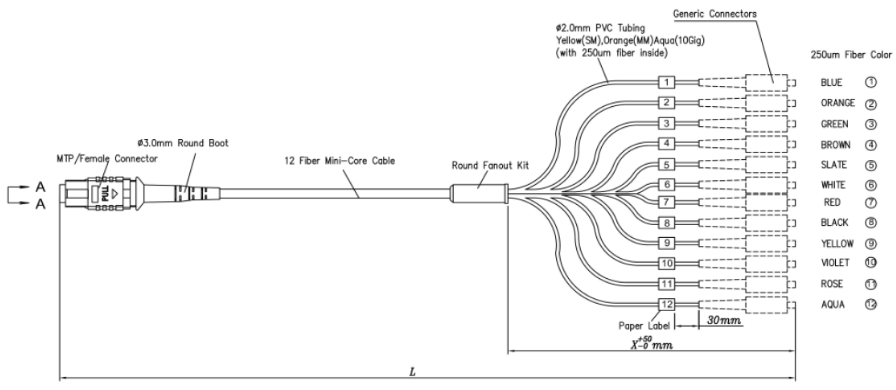 ● 可以定制的长度和结构,提供不同的光纤模式,包括单模(OS2)和多模(OM1〜OM5)