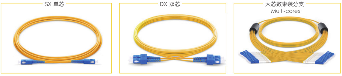 可根据纤芯芯数分类,如单芯光纤跳线,双芯光纤跳线,大芯数分支光纤跳线,大芯数束装光纤跳线