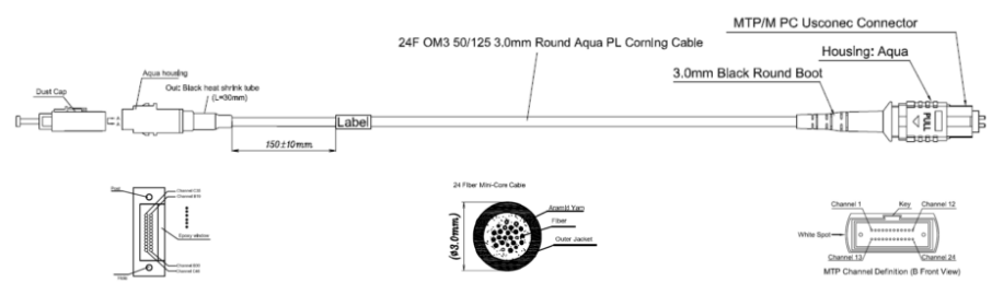 部件描述: MXC适配器至 MTP 插头,24 光纤,OM3,Mini-core光缆