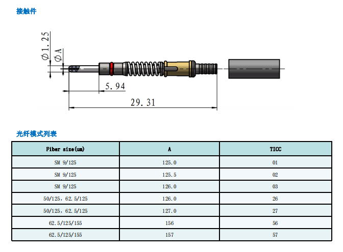● 采用可取卸的标准Φ1.25mm中性光纤接触件