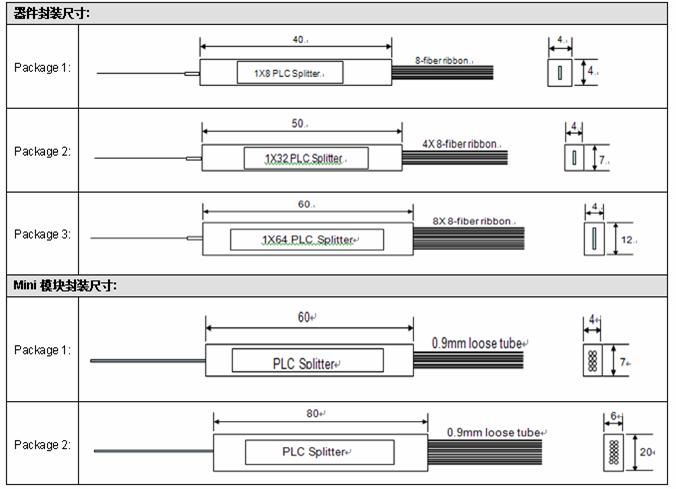 平面波导型光分路器(PLC Splitter)是一种基于石英基板集成波导光功率分配器件,具有体积小,工作波长范围宽,可靠性高,分光均匀性好等特点,特别使用于无源光网络(EPON,GPON等)中连接局端和终端设备并实现光信号的分路,提供1×N和2×N全系列产品,并为客户订制适合各种场合的光分路器。