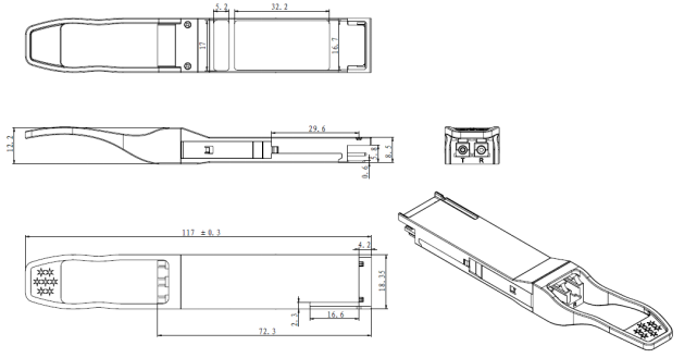 QSFP28 DR1, 106.25Gb/s, 500m, SMF, Dual LC,-40 ~ +85℃ |