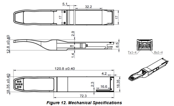 它们符合QSFP56 MSA和IEEE 802.3 200GBASE DR4和CEI-56G-VSR-PAM4标准。数字诊断功能可通过CMIS4.0规定的I2C接口使用。收发器符合RoHS 2.0标准,符合指令2011/65/EU的无铅要求。