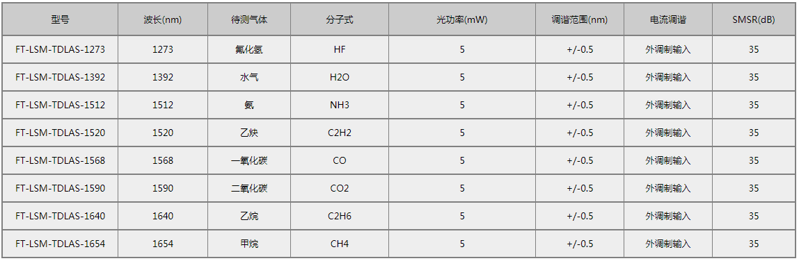 气体检测激光器模块是专为气体吸收检测定制的可调谐激光器光源。内置的激光器组件集成了温度调谐功能,具有输出光功率高、窄线宽、波长精度高等特点。波长调节范围可在所需波长+1nm范围,最小步进量达到50pm,可满足客户初步确定气体吸收峰范围。而内置的波长校准功能,满足精确锁定气体吸收主峰的优点,调节精度可达1pm,调节范围达100pm。外置激光器高速电流调制接口,满足客户在气体吸收方案中调制解调的应用。内嵌DSP处理器与波长锁定单元,优化的稳频机构使波长稳定性达+5pm、波长基准差异小于+15pm、功率稳定性小于0.1dB,全波长范围内功率差异性小于0.2dB。丰富的人机界面,用户可通过RS232串口进行设备监控操作,设备上位机软件基于LabVIEW开发环境,软件兼容性优越。