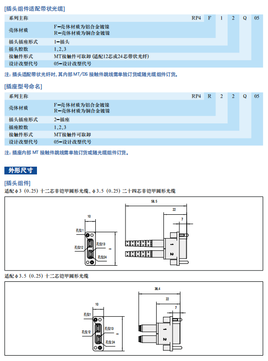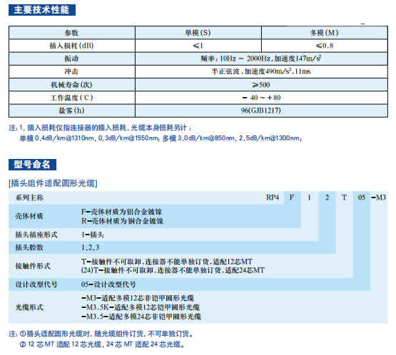 ● 接触件采用MT插件,可实现12-72路高密度信号传输
