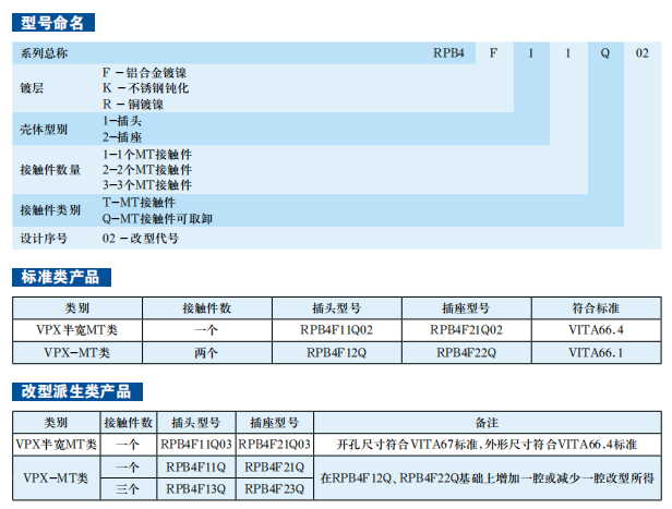 ● 适配VPX的光纤连接器,符合VITA 66标准