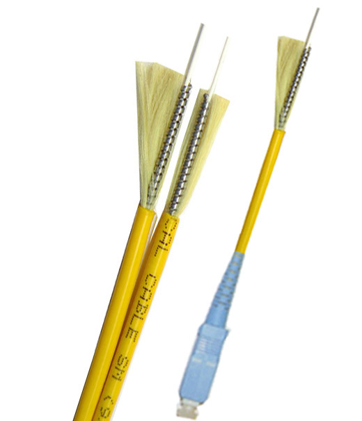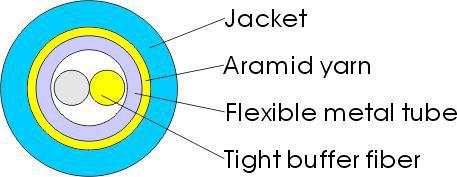金属铠装室内软光缆,是在光纤外面加一根微小的不锈钢软管作保护。与传统光缆相比,该光缆具有高抗压强度、抗拉强度高、防鼠咬、直径小、柔软易弯曲等特点,可使用于各种恶劣环境;该光缆可与标准3.0MM光纤连接器相匹配,用其加工成的铠装光纤跳线可象电缆线一般轻松使用。