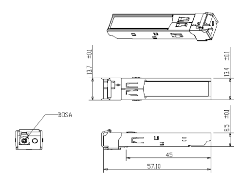 ● Compliant with SFP MSA and SFF-8472 with simplex LC receptacle