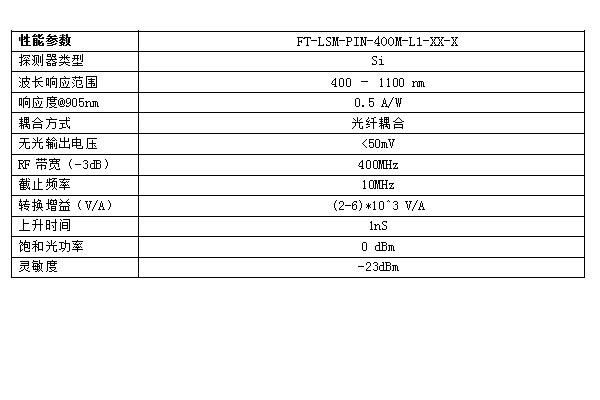 FT-LSM-PIN-400M-L1-XX-X系列模拟探测器模块集成PIN探测器,采用可靠高速电路设计,有效地减少激光器噪声及信号畸变,具有多种光谱响应可选,低噪声,高增益,带宽最高可达400MHz,使用方便等特点,输入可选用光纤或空间耦合形式,输出采用传统SMA-K50射频输出接口,主要用于光谱检测、气体检测、光模拟光信号接收及光纤传感测量等领域。 |