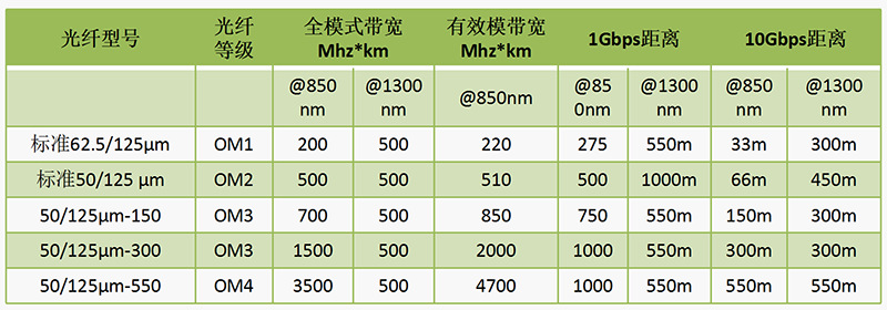 不同型号的多模光纤在传输速率,传输具体上也有不同的区别