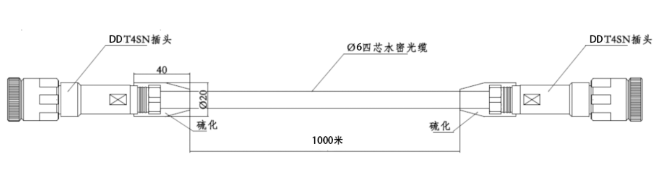 型号说明:两端为FT-BC-T4SN四芯水密插头,使用φ6四芯单模水密光缆,光缆总长1KM。
