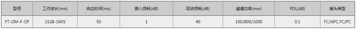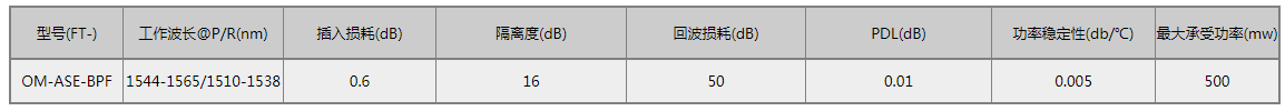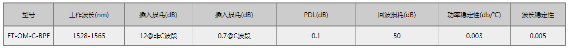 F-tone Networks公司提供的ASE滤波器工作在C波段,用于滤除无用的ASE光信号,提高信号光的信噪比,在级联光纤放大器或光纤激光器中应用广泛。典型差损小于0.4dB,最大可承受500mw的光功率。