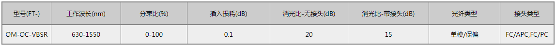 F-tone Networks提供的可变分束比光纤耦合器通过手动调节旋钮来调节光纤耦合器的分束比,调节范围从0-100%可调,且具有非常小的插入损耗,工作波长980nm、1060nm、1310nm、1550nm可选,光纤类型单模和保偏可选,在光纤测试系统中应用广泛。