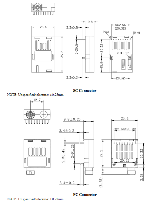 ● 1×9 Package SC/FC/ST Connector